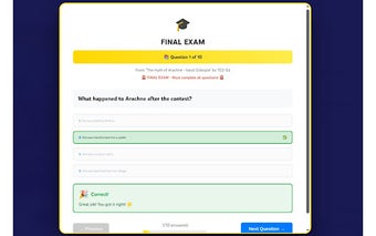 YouTube Quiz Generator with Final Exams & Daily Reviews to darmowa wtyczka do przeglądarki Chrome, która umożliwia użytkownikom przekształcenie filmów z YouTube w narzędzie edukacyjne. Dzięki tej aplikacji można automatycznie generować quizy na podstawie treści wideo, co pozwala na efektywne przyswajanie wiedzy. Użytkownik ma możliwość przeprowadzania codziennych przeglądów oraz końcowych egzaminów, co sprzyja monitorowaniu postępów w nauce za pomocą sztucznej inteligencji.